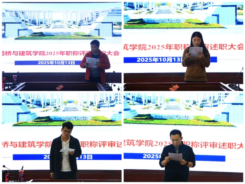 10月13日下午,道桥与建筑学院在北三楼会议室召开2025年度职称评审述职大会。曾绍武、王铭、雷天奇等12名参评教师依次登台,围绕德、能、勤、绩、廉五个维度,系统梳理了个人在师德师风、教学科研、社会服务等方面的突出成果。述职内容既展现了教师们深耕专业的学术积淀,也体现了立德树人的教育情怀。
