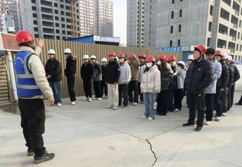 上午9时,实习活动在鸿基世业万和府项目正式拉开帷幕。陕西广厦项目技术负责人原建立、渭南鸿基世业房地产土建工程师杨国林,向师生们详细介绍了万和府项目的工程概况、打造“透明工厂”的理念以及建设“好房子”的标准,使师生们对项目有了全面的了解。随后,在项目团队的引领下,师生们开启了一场内容丰富的现场教学之旅。