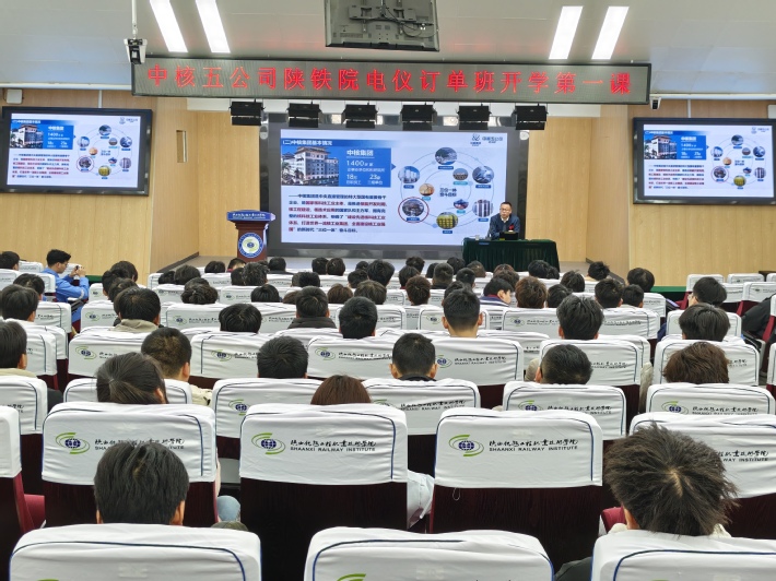 为进一步深化订单班学生对中核五公司企业文化的认知,筑牢学生职业认同根基,增强校企协同育人实效,3月12日上午,中核五公司陕铁院电仪订单班开学第一课在高新校区诚信厅正式开讲。桥建学院、动力学院130余名中核五公司电工订单班学生齐聚一堂,开启新学期的职业启蒙与成长之旅。